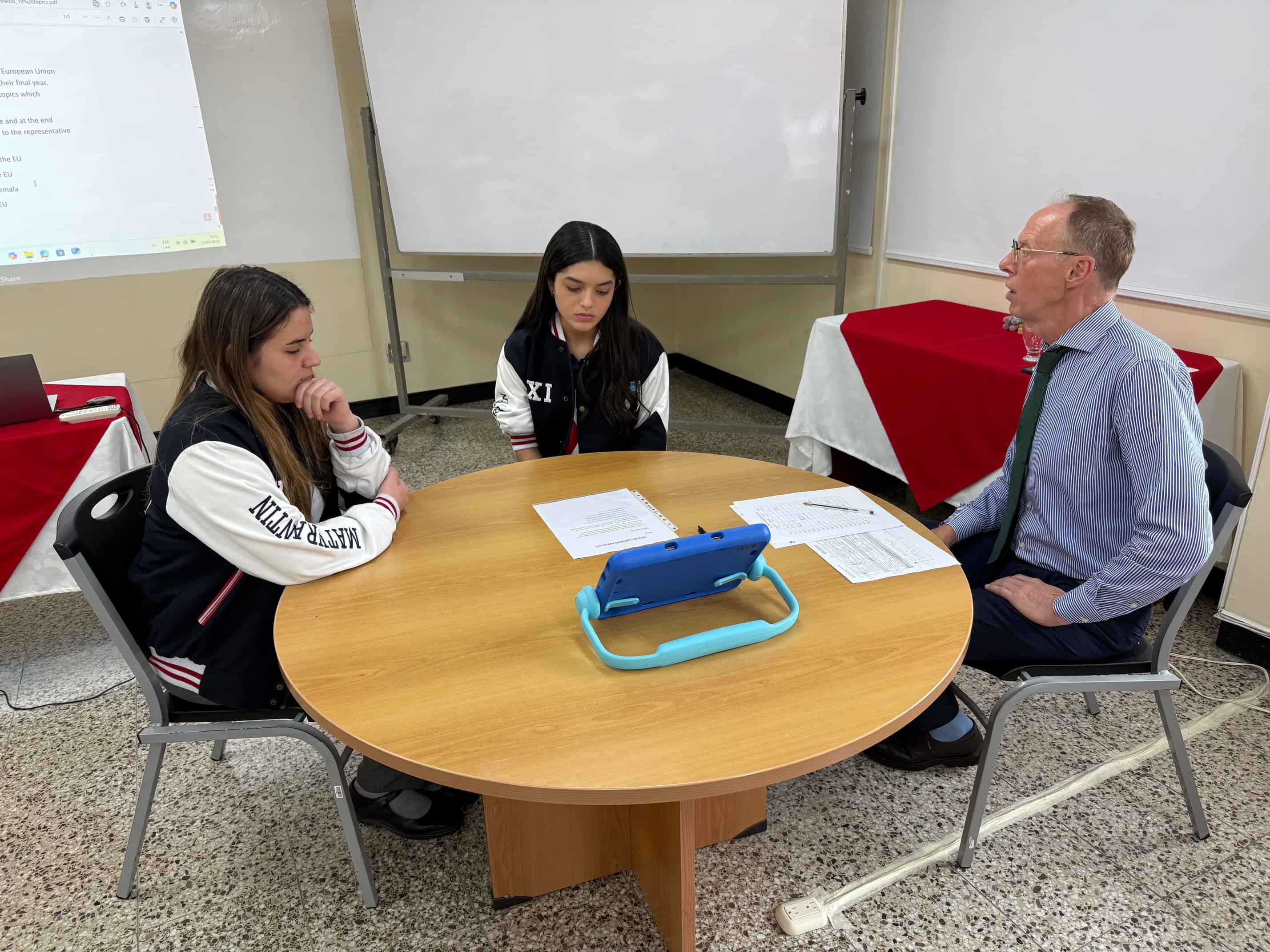 Del 17 hasta el 19 de septiembre se llevó a cabo el Examen de Graduación orientado en competencias oral presidido por el Director General Lic. Michael Peitler, y los profesores de materia: Lic. Gerold Stadlober / Dra. Margaret Mantl (AL), Lic. Daniel Aichholzer / Lic. Matthias Kaserer (MA), Lic. Georg Mayer / Lic. Michael Dragosits (IN) y Lcda. Jeanette Enríquez / Lcda. Lourdes López (LL), Lcda. Lisa Borrayo / Lcda. Luz Gatica (CS), Lic. Thomas Schlager (QU), Lic. Ingo Pelikan-Ambrosch (BI), Lic. Philipp Freiler (PH). Como encargada del VA fungió la Lic. Philipp Freiler, como encargada del VB la Lcda. Lisa Borrayo. En las evaluaciones escritoas fuimos acompañados por parte de la Lcda. Barbara Schrotter como representante del BMB.