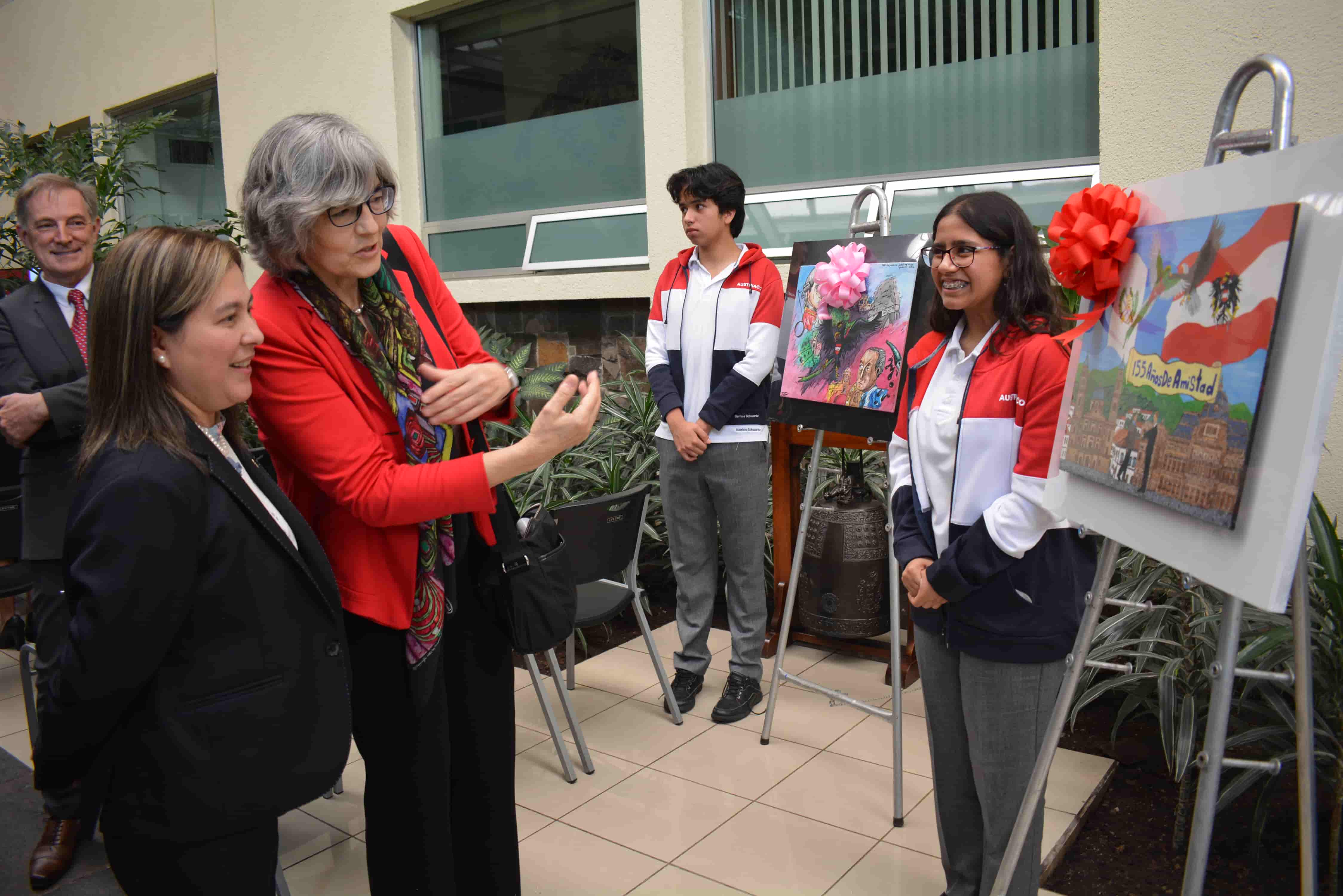 Hoy acompañamos la celebración de 155 años de relaciones bilaterales entre Austria y Guatemala. La Directora General de Relaciones Internacionales Lynsay Hernández de Muñoz, la Embajadora Elisabeth Kehrer y el Director Michael Peitler, renuevan la amistad y compromiso del trabajo conjunto y entregan obras de arte pintadas por alumnos del Instituto Austriaco Guatemalteco y del Colegio Viena Guatemalteco.